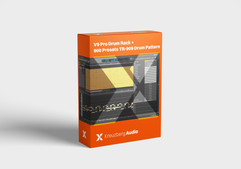 14,99€ – Kaufen Zur Kasse Zum Warenkorb hinzugefügt Inklusive 19% Steuer X V9 Pro Drum Rack + 900 Presets: TR-909 Drum Pattern Generator für Bitwig Studio 14,99€