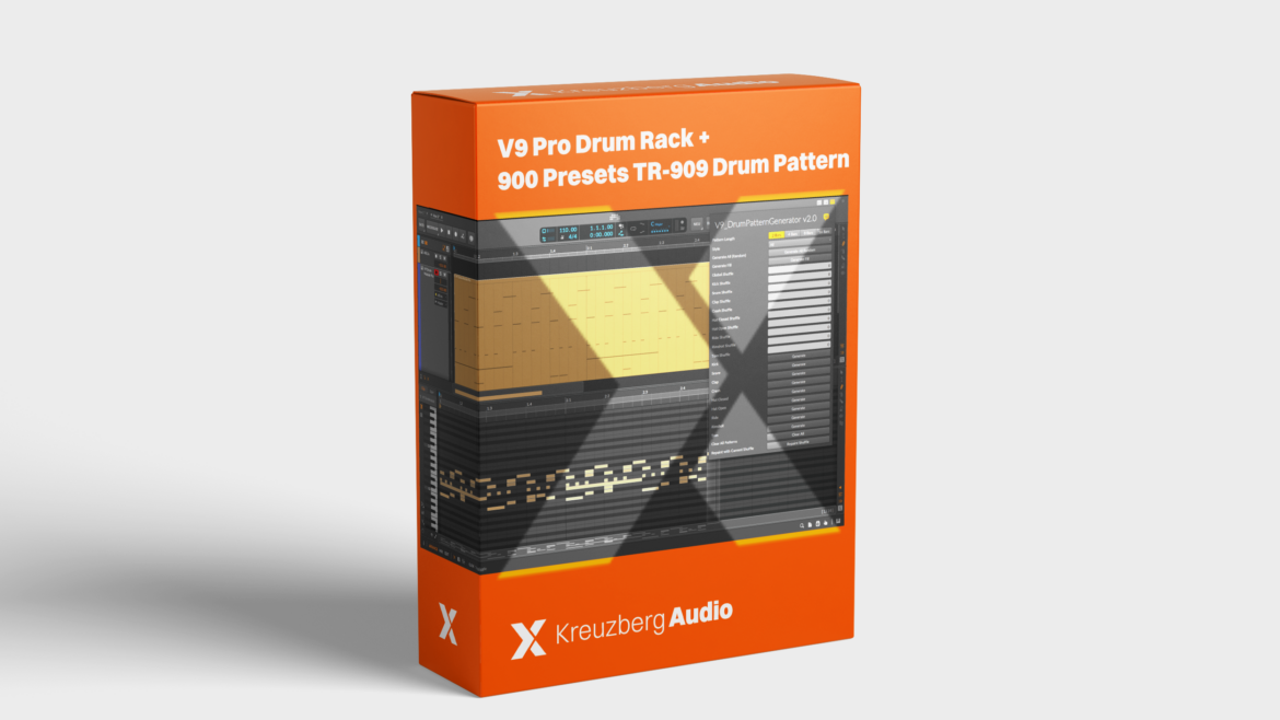 Bitwig Studio Bundle aus Unified V9 Drum Rack und 900 handgefertigten TR-909 Pattern Presets über 10 Genres. Alle V9 Drum Module in einem Preset, intelligentes Velocity Mapping, von Chicago House bis Rotterdam Gabber. Echte MIDI Noten direkt im Clip.