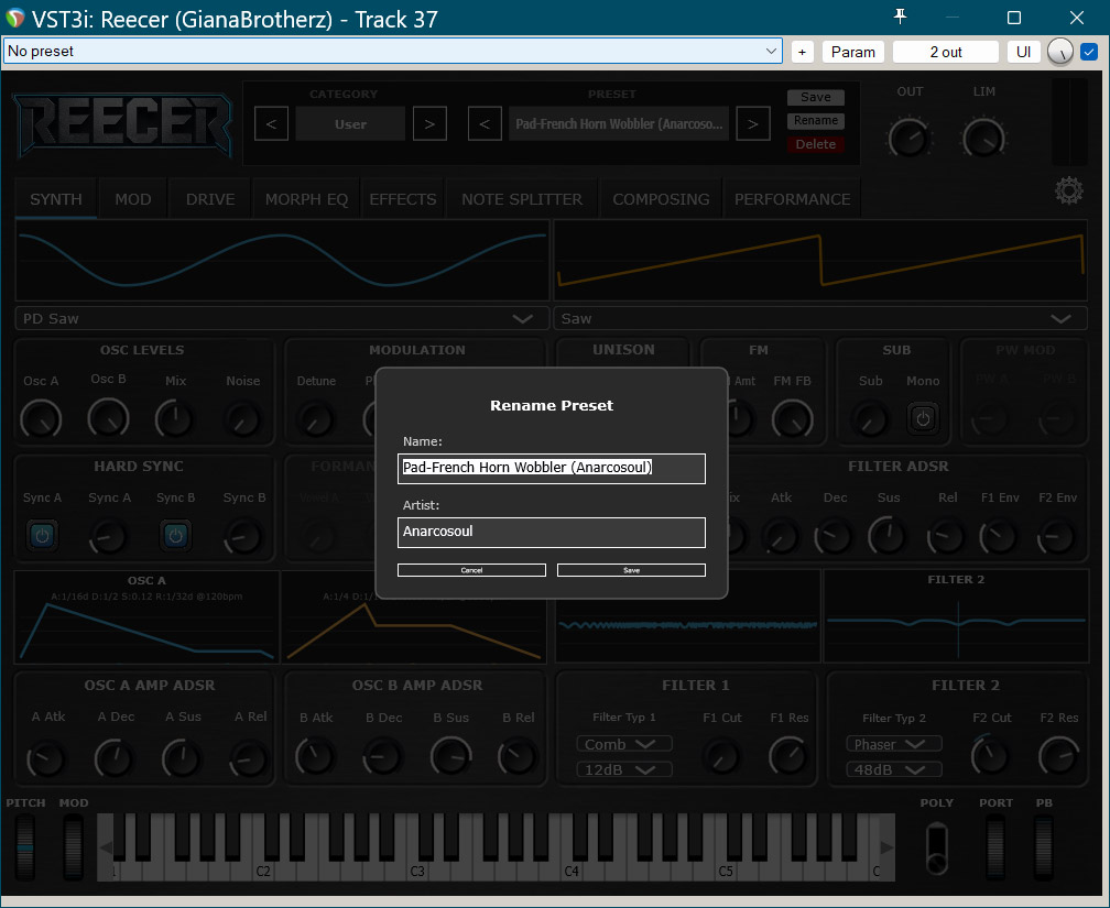 The "cancel" and "save" buttons on the rename preset dialogue box have become vertically small and the text is probably half the size of the rest of the text. This is a screenshot in Reaper.